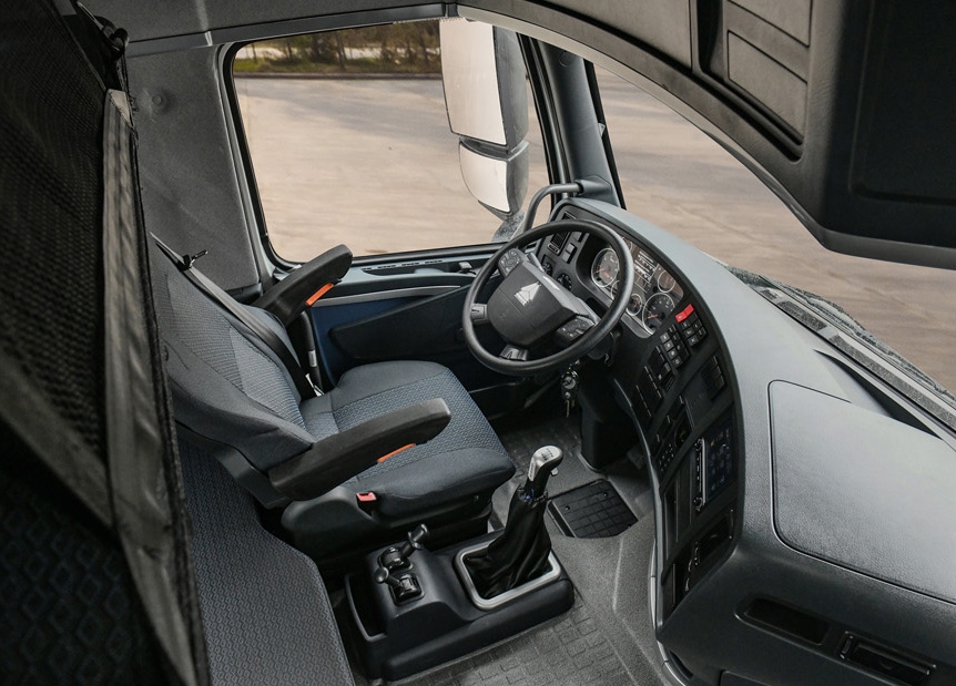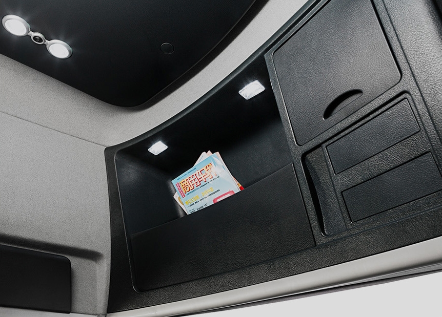 駕駛室內(nèi)部空間大,可供活動范圍大,通過性好;且有多個儲藏空間。